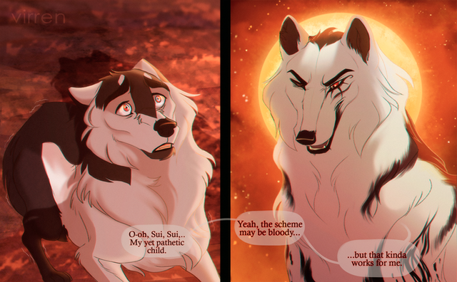 Our character's actually are not aquainted, so, probably that's why Marseline is not so talkative when Raivo starts questioning. Idk how she made other wolf come and join her, and how other wolf agreed, as they're completely strangers, but I know, Marseline can be persuasive.(nothing bad meaning) But she knows what she should do, that's a kind of inner witch flair?