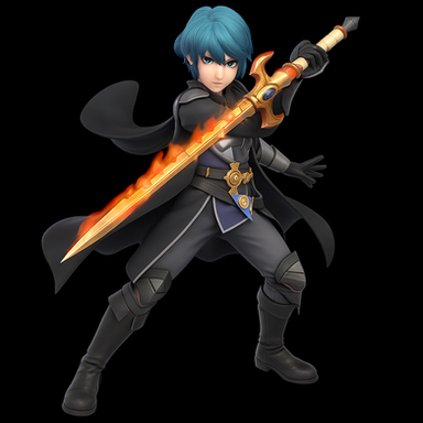 A render of Male Byleth's smash ultimate model in his pose from his official Fire Emblem Three Houses artwork.This was rendered in Blender cycles