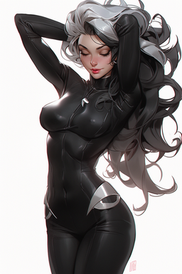 #blackoutfit #bodysuit #chilling #comicbook #comiccharacter #comics #comicstyle #curvaceous #digitalart #digitalillustration #fanartdigital #ladydeath #leather #sexygirl #whitehair #generativeart #longhairgirl #whitehairgirl #ladydeathcomics #bodysuitsexy #midjourneyart