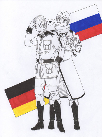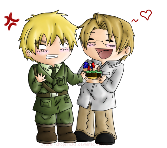 Italy (Feliciano Vargas) and Germany (Ludwig Beilschmidt) from the anime Hetalia :0The quality is bad, I'm sorry >.< I lost the whole thing and had to rely on a screenshot I saved