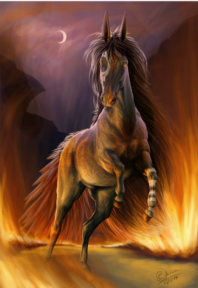 It's such a powerful piece! The colors are great and vibrant, and the contrast makes the horse's movements more expressive.