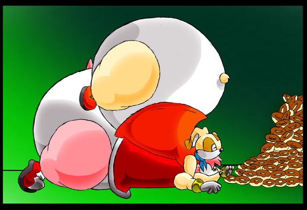 Aha! First comment! OwO Niiiiiiiiiiiiiiiiiiice... Oh man, this is...beyond awesome! X3 Vanilla looks so HUGE, and the looks on fat Sonic/Tails/Amy/Cream (Kudos for adding 'em in there) are just priceless.