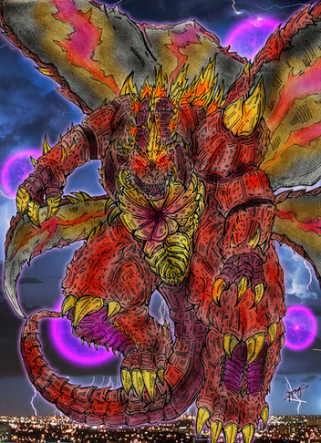 How did I not find this earlier? Amazing work on Destroyah, I really like the style you used plus the pose he's in like he came rising from right out of those flames, it's just so badass.