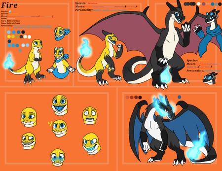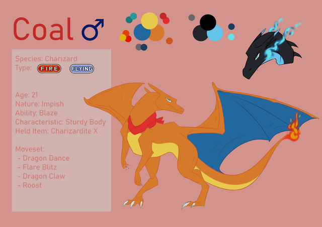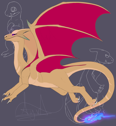 - Her colouration in both forms is a bit darker than the average charizard, as for her wings they are less turquoise and more of a blue in her normal form.