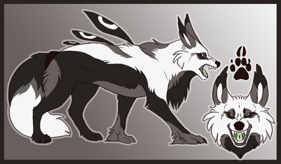his design was completely experimental, originally he was completely black, but then I made him this pale grey and erased away sections to give him black markings, so.... Tad-a! XD
