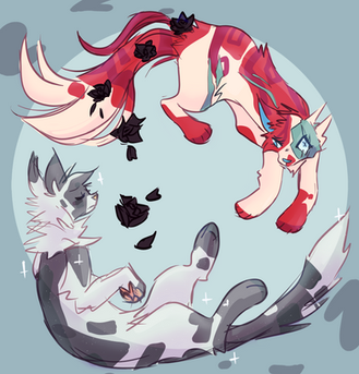 This was a gift for a friend of min IRL, their favourite bnha character is Toga and mine is Dabi so ofc I had to draw them together gytgjhukjalso semi inspired by this song: