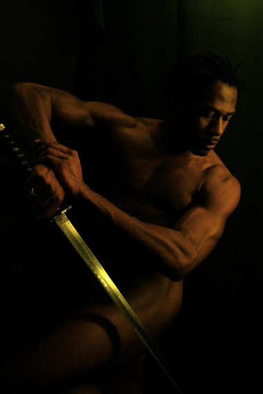 fantastic, absolutely sexy. Gorgeous body and posing, the models looks even more intense on the photo than he looks even in real life. I´m wondering how you got the fabric so well formed on the face and floating in the back at the same time.