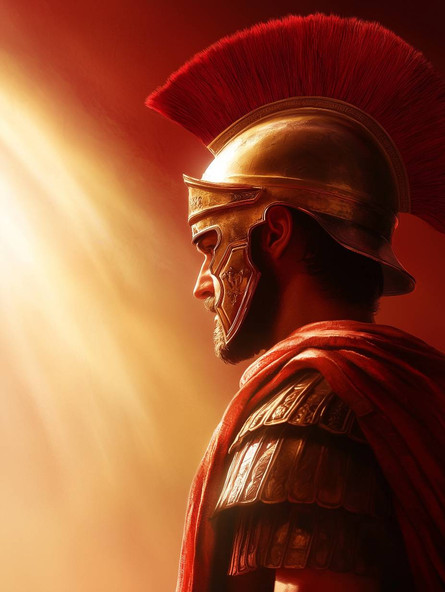 That flash of color from the crest of the helmet with red plume and the golden and chrome sheen off of the helmet as well with the shadowing all Perfection!