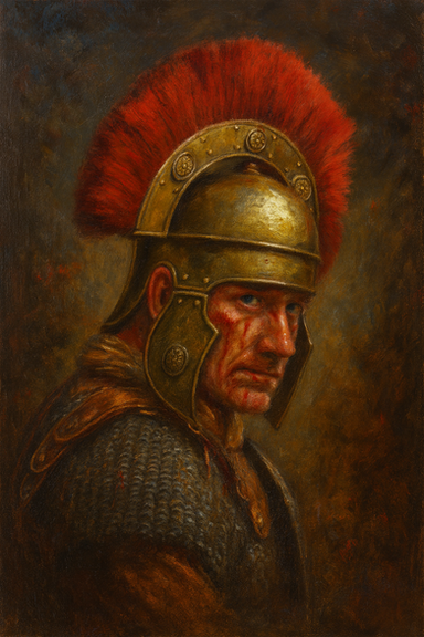 As I'm currently reading a book about the roman legions i thought i would point out that evidence would suggest that this is a legionary's helmet and not a centurion's... the crest ran from ear to ear for a centurion and nose to neck for a legionary (although i seem to recall something about the Praetorian Guard doing something weird too, but cant find reference to it now).