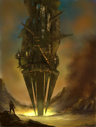 #apocalypse #city #construct #crawler #desert #digital #fiction #giant #mega #moving #sand #science #sun #art #colossus