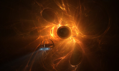 Ah, wonderful. I was just thinking I needed a new wallpaper for my operating system and I was definitely in the mood for something cosmic. The juxtaposition of blues (and on the left, a hint of violet) really adds character to the fire-on-black colorations. Lots of action but it's not overly busy - I like the way that comes together. Fantastic!