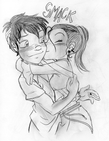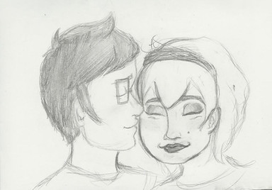 Yesssss thats mee... I for some reason can sketch anyone correctly but I can never really sketch myself correctly, oh well, poop. Anyway! Me and my gf.Want one of these?? Just $5. Cx