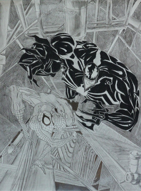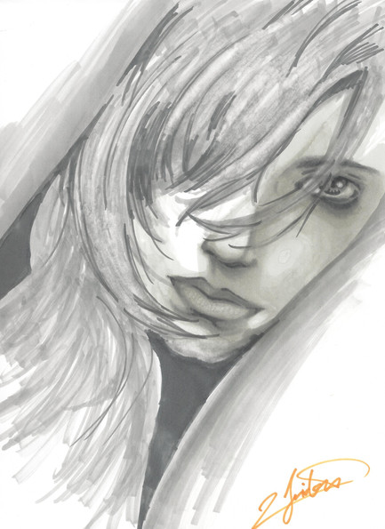 And I rarely use color for my drawings so when I went to find something to color the hair and eyes I found myself in a jam because I don't really have much color materials at hand.. soooo... I ended up buying a box of crayons..