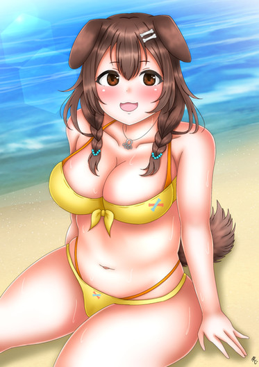 #sea #artwork #cute #fanart #manga #swimsuit #vtuber #korone_inugami