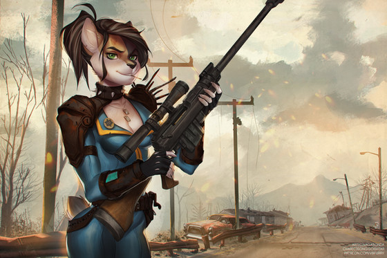 a commission for who wanted his sona in a vault suit with a thompson, fallout themed :3hope ya like <3