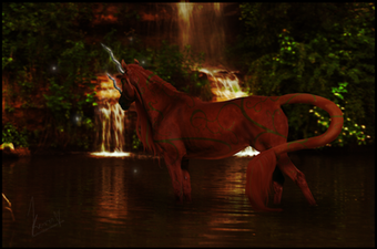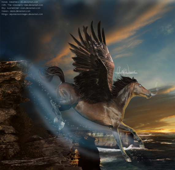 This is beautiful and a wonderful idea! I love the work on the mane and tail, they look wonderful and radiating heat, and the Phoenix is such a nice touch to the scene