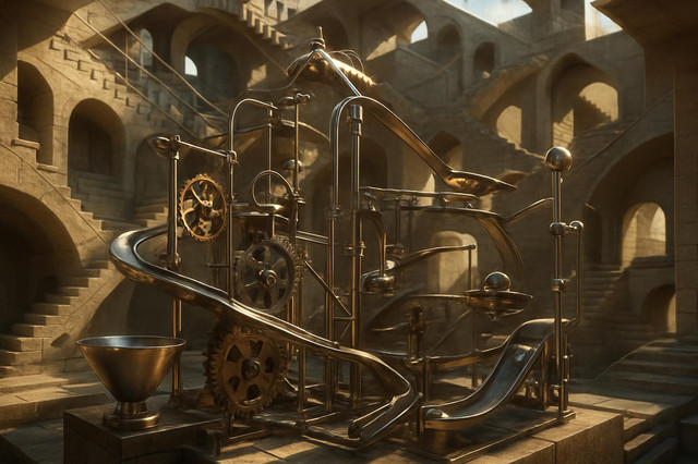 #digitalart #magic #steampunk #arms #book #complex #flipping #gears #goldberg #holding #including #machine #many #one #rube #through #two #rubegoldbergmachine #it #with #other