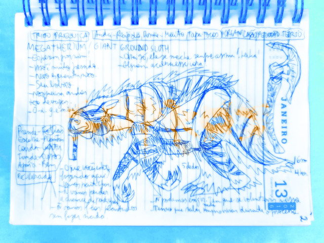 Atravessando gargantas, narinas, bocas e crista-tubos, os sopros vibram nos corpos malhados dos sauron-devas como sinos, repercutindo no silencioso ar noturno deste novo mundo bem-aventurado.
