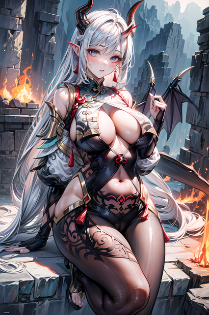 #ai #beautiful #breast #girl #horns #sexy #whitehair #azurlane #aiartwork #azurlanefanart #aigenerated #agir_azur_lane