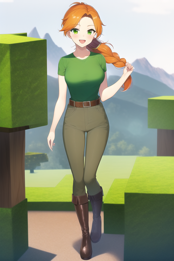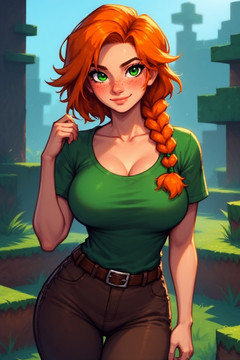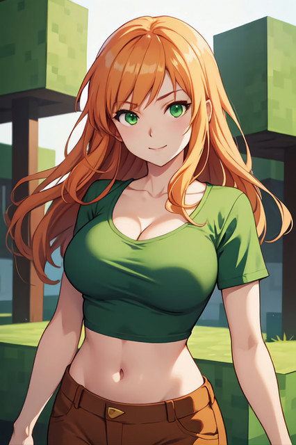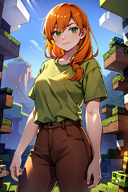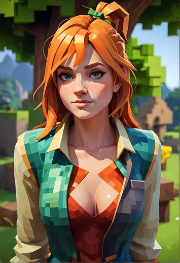 #ai #girl #greeneyes #orange #orangehair #minecraft #minecraftart #orangehairgirl #minecraftfanart #minecraftalex #alex_minecraft #aiartwork