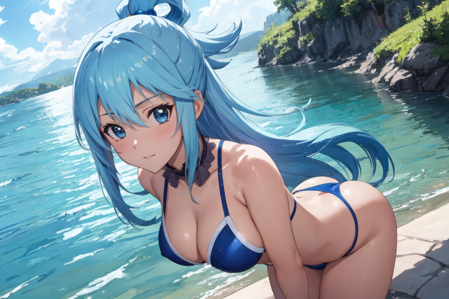 #ai #anime #aqua #ass #beautiful #bikini #girl #sexy #back #aiartwork #bluehair #konosubarashiisekainishukufukuwo #aqua_konosuba #aigenerated