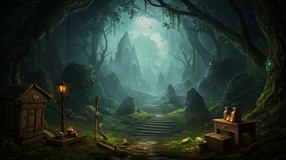 #button #cabin #fog #hut #labyrinth #maze #night #rock #steps #stones