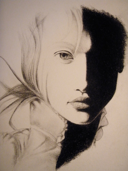 The first of my Half-Faced series. It portrays the two faces of society- or of an individual, for that matter.The series contains three pieces. They represent what I consider to be society's sins.