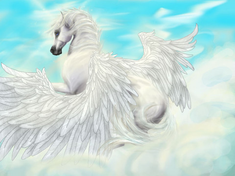 Only negitive thing I would say is that her hands should be gripping the mane, and maybe the mane a big fuller as if spreading back against the rider. But then, that's just me.