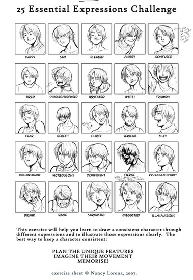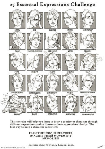 Another try on the expressions challenge with a different character and style of drawing. The character this time is Lommo. Original sheet to be found hereHe usually identifies as male but is pretty genderqueer, he likes to put on some make up every other day and feels good whether he passes as male or female or something between, doesn't really matter. He isn't exactly a human, for example he has some stripes around his body and face but I decided to leave them off so the expressions are clearer.