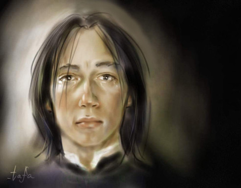 I like this! And I'm not a Snape fan, so I easily disregard Snape art. One reason is a lot of people like to make him hot or draw Alan Rickman. This is really true to character and shows a homely guy you have sympathy for. Very nice style.