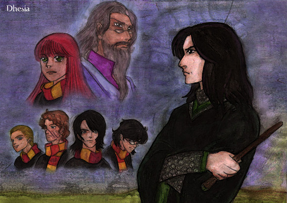 So, I added (a part of) Lily. I didn't add her entire body because, #1 I took mercy on poor Severus (too many Gryffindors at once) and #2 the glances and expressions would not fit with Lily in focus.Previous version : vizen.deviantart.com/art/Amusiβ¦