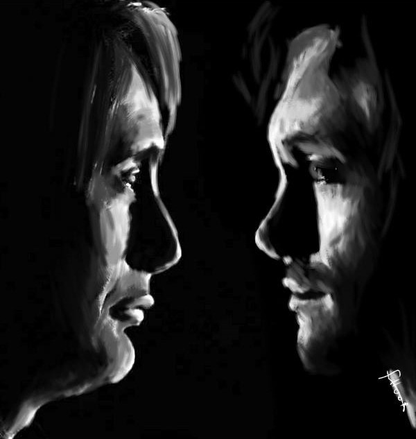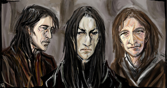 Strangely enough, I swear this particular picture is cursed - I lost the WIPs several times in the damned computer. And the draft of the full picture (with Harry in the middle) is still missing. Not sure that it will be my last version.ΒSo, it would be Snape and Black having their argument at Grimmauld place in OotP.