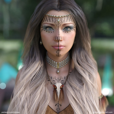 The facepaint is well rendered also. Again, very beautiful. There's a story there I want to know about.