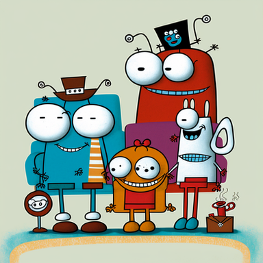 Robin looks like the short one with the long hair... I am that one with the glasses (well, I don't have glasses or a really big head but he/she looks smart), Daphne is that big one and Jari is the one with the really long legs