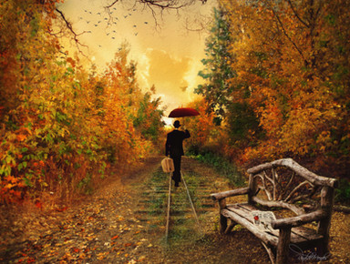 i wish i could find such a beautiful forrest. i love the red leaves and the lovely sunbeam. it's perfect..