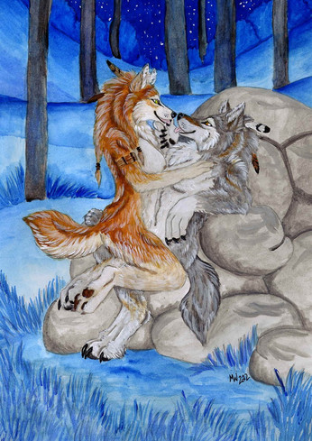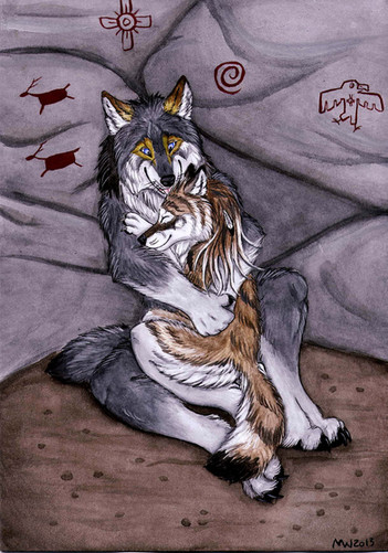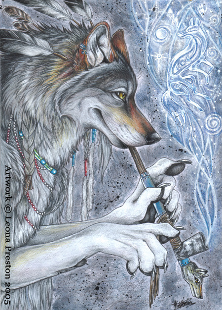 I really like this. Makes me think that the wolf spirit revealed itself in the native american during a ceremony.
