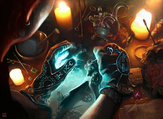 I love the lab equipment, the mice (they are rats, aren't they?), and the curtains blowing in the breeze. The lighting and composition are both spectacular... and the portrait behind him just tickles my fancy (I don't know why).