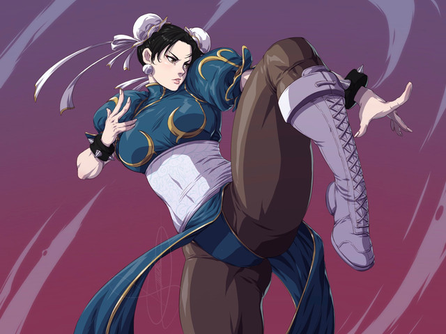 #2022 #background #capcom #cellshading #character #chunli #color #digital #effect #illustration #kick #krita #lineart #pose #streetfighter #testing #texture #wip #vloopyart