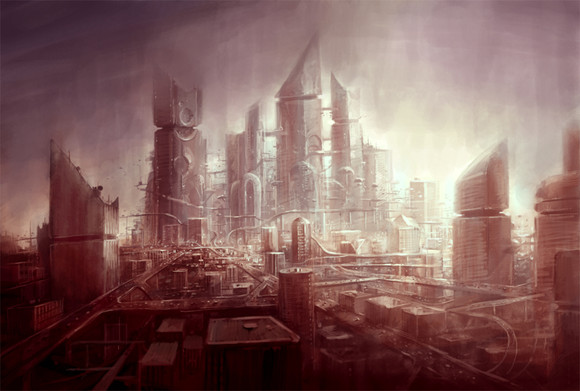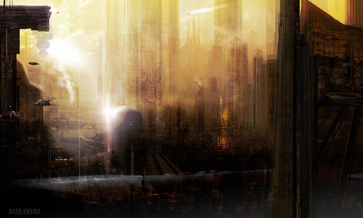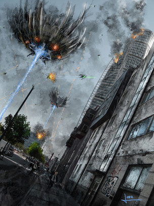 Good work! I like transition between colors of city and sky. Also choice of colors itself is good, making neat contrast of cold city and sky. Buildings look nice and windows give them very realistic feeling