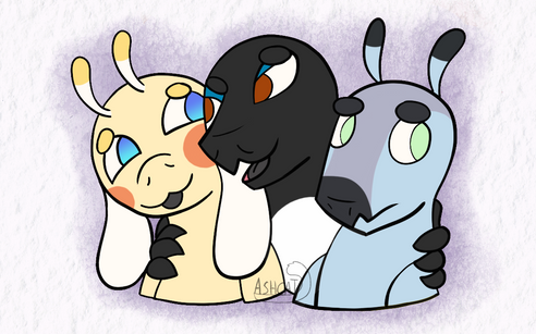 #scalie #anthro #female #furry #group #halfbody #hug #male #snake_person #saurosapient #all_tomorrows #satyriac #killer_folk