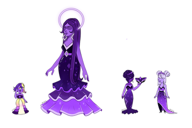 Pink Dream Diamond is another member of the Council of Elementals, and she is a kind, caring diamond. Her court mediates between the other Diamond's (and their courts) for the most part, doing their best to keep peace within the council. Dreamy can emit a mist which puts other gems to sleep, though how well the mist works varies with each gem.She prefers gems of pink, red, or purple colors, though she may allow gems of other colors into her court. Dreamy does not tolerate violence within her own court, nor major conflict. If a gem disrupts the peace, they could be asked to leave the court. All court members must wear her symbol, which is a white crescent moon (like her gem) with a pink diamond in the middle.