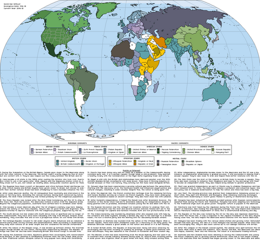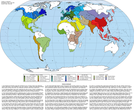 However, there are other nations beyond the big four. Hahnuhah was born during a revival of practices and the colonists' descendents joing up with the natives in rebelling against Atlantean influence. Now a neutral power, they are a growing economic force and welcome anyone who wishes to escape the madness of the proxy wars. Cambeba and the Inkan Empire also rebelled, due to having been farway and not really feeling represented by the Atlanteans. They have also broken away and established their own powers. The Inkans have also traded with the people of Mu and some believe that Muian artifacts may be with the Inka, who ahven't responded. The Cambeba people are trying to maintian dominance over Pindorama and have been arming the natives in roder to push other companies our and they can gain dominance over it. It helps that they speak similar languages and good relationships with the people there. Punt remain free of the influence of Atlantis and its children, which annoys Kemet to no end. They also have a stake in the peninsula while also trading with the Lemurians and with their neighbors, the people of New Zerzura. After deserifcation turned the north of africa into an endless sea of sand, the people headed into the center of the continent, filled with primitives, thick jungles and the like. But they have long sinced tamed their ome and the plenty of rivers and supplies have allwoed New Zerzura to become better than ever. Trees growing with buildings and plenty of strange animals are seen here. While they try to keep to themselves, they often have to defend themsleves from Lemurian and Atlantean interests. Lastly, lies the mobile nation, the Great Horde. These might nomadic people traveled on horses and maintained the land. They now have mobile cities and travel in weaponzied transporation vehicles while there are some permnanet megacities serving as large rest hubs for the smaller moving cities as well as holy sites. Feared for their ruthlessness and power, they were not liked since they ended up spreading the Black Death a century ago and caused many problems for the people of the world.