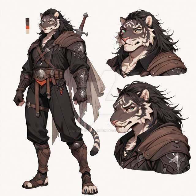 #characterdesign #adoptable #warrior #adoptableauction #fighter #tiger #characterconcept #digitalart #originalcharacter #fantasycharacter #dnd #referencesheet #sale #ai #anthropomorphic #character #characterart #charactersheet #digitalpainting #exclusive #fantasy #fantasyart #fantasyillustration #handsome #hotmale #malecharacter #oc #rpg #furrymale