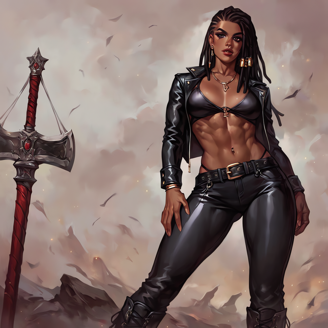 #adoptable #ai #animegirl #beauty #character #characterart #characterconcept #characterdesign #curlyhairgirl #digitalart #digitalpainting #exclusive #fantasyart #fantasycharacter #femalecharacter #fullbodyportrait #oc #originalcharacter #rpg #sexygirl #sword #warrior #warriorwoman #weapon #weapondesign #muscularfemale #muscularwoman #adoptadoptable #ocadopt