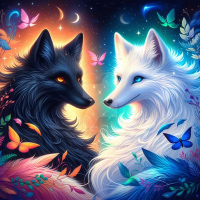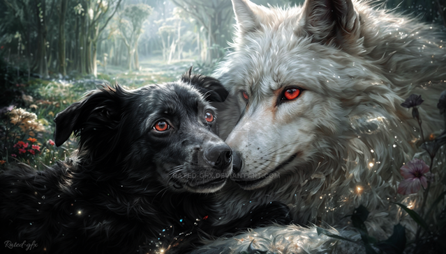 #adopt #adoptable #ai #animal #animalportrait #animals #blackwolf #companionship #creature #digitalart #digitalpainting #exclusive #fantasy #fantasyart #fantasycharacter #fantasycreature #fantasyillustration #mystical #nature #sunlight #wallpaper #whitewolf #mysticalfantasy #naturebeautiful #natureandanimals #cuteadoptables #adoptadoptable #creatureanimal #creaturefantasy
