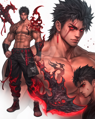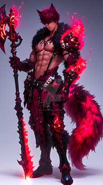 #adopt #adoptable #ai #anthropomorphic #character #characterdesign #dailydeviations #digitalart #exclusive #fullbody #glaive #glowing #hotguy #hotmale #malecharacter #oc #originalcharacter #red #rpg #sword #tattoos #warrior #weapon #weapondesign #wolfanthro #wolfcharacter #anthrocharacter #wolfadoptable #wolfadoptables #anthroadoptable
