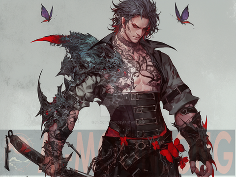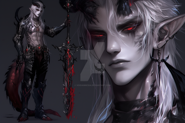 #adoptable #ai #characterconcept #characterdesign #charactersheet #demon #digitalart #digitalpainting #exclusive #fantasyart #fantasycharacter #glowingeyes #handsome #horns #hotmale #malecharacter #oc #originalcharacter #referencesheet #rpg #sword #tiefling #warrior #weapon #weapondesign #reference_sheet #adoptadoptable #ocadopt #demonadoptable