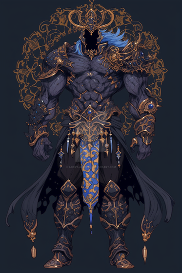 #ai #character #characterconcept #characterdesign #claws #crescent #digitalart #digitalpainting #faceless #fantasy #fantasyart #fantasycharacter #fullbodyportrait #hooded #knight #magic #malecharacter #monster #moon #muscular #oc #originalcharacter #otherworldly #rpg #sword #warrior #weapon #weapondesign #adoptadoptable