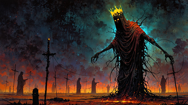 #digitalart #characterdesign #magic #fantasyart #fantasycharacter #horror #epic #forest #warrior #digitalpainting #monster #gothic #armor #candles #dailydeviations #dark #darkfantasy #eerie #fantasy #fullbody #originalcharacter #staff #swamp #trees #weapon #darkfantasyart #eerieatmosphere #hoodedwarrior