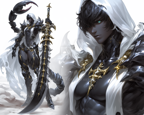 #characterdesign #warrior #digitalart #malecharacter #anime #adoptable #originalcharacter #digitalpainting #monster #ai #animeboy #anthropomorphic #bones #character #desert #fantasy #fantasycharacter #fantasyillustration #hotmale #muscular #oc #rpg #scorpion #sword #weapon #weapondesign #anthrocharacter #anthroadoptable #scorpion_tail #hybridcharacter
